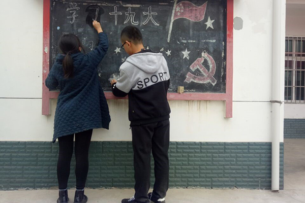 党的十九大胜利闭幕之际,如何学习十九大重要精神、怎样宣传十九大知识、为未来乡村发展谋思路成为村委会近期工作的重要课题。11月12日,以炸金花在线玩 动科1502班张潇筠同学为领队的田园使者队伍受五泉镇汤家村汤主任邀请下,赶赴村庄完成绘画“学习十九大精神的黑板报”的任务。