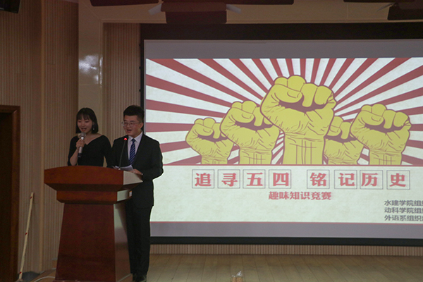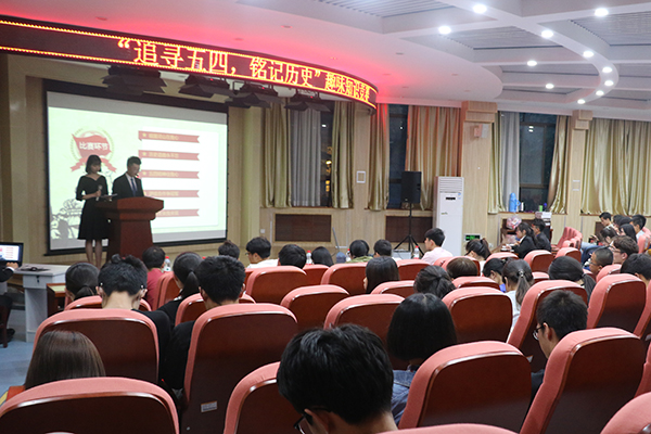 为了让同学们牢记历史,深刻体会到五四运动的精神内核,值此五四运动99周年之际,炸金花在线玩 联合水建炸金花在线玩 、外语系于5月4日晚在外语楼二楼报告厅举办了“追寻五四运动,奏响青春乐章”的历史知识趣味竞赛活动。水建炸金花在线玩 学生会主席李培铨、外语系学生会主席屠菡琳和炸金花在线玩 团工委副书记龙靖出席了本次竞赛活动。