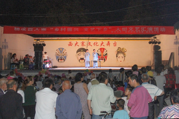 村民们得知晚上有演出,吃过晚饭就拿着小板凳或者开着老年代步车、携老扶幼早早的来到村里的文化广场,期待着一场大学生的文艺表演。晚上八点,文艺演出正式开始。一曲明朗刚健的秦腔听得台下的村民心里直痒痒,性情豪迈的关中人也想来唱两嗓;由我校相声小品协会带来的相声《结巴论》更是逗得观众捧腹大笑,掌声阵阵。随后《吉祥飞舞》等舞蹈节目中,其欢快的节奏感染了现场观众,让大家忘记了一天的劳累。