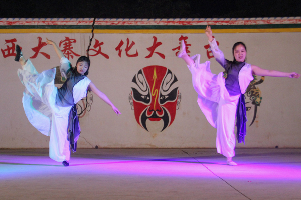 我校部分学子以及当地村民等欢聚一堂,观看演出。寨东村寨西村舞蹈队、生命支部、机电支部、林学支部、相声小品协会等真情演出。此次文艺下乡共选送20个贴近农村生活、村民们喜闻乐见的节目,形式体裁多种多样,包括相声、小品、秦腔、诗朗诵、合唱、舞蹈等,给村民们带来了一场丰富多彩的视听盛宴。
