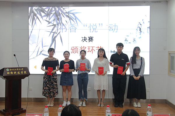 本次决赛共分为“知识竞答”、“你划我猜”、“书海采撷”三个环节。在第一环节中,从金戈铁马,到琴棋书画;从大漠孤烟,到水墨江南;从忠肝义胆,到千里婵娟。参赛选手们展现出了良好的文学功底,凭借其渊博的知识储备和睿智的作答,赢得了现场观众阵阵掌声。比赛如火如荼地进行着,在紧张激烈的“知识竞答”之后,有趣的“你划我猜”环节拉开了帷幕。选手们默契配合,动作幽默诙谐,方法多种多样,台下观众的欢笑声不绝于耳。随后,“书海采撷”环节上演,选手们利用制作精美的PPT,缀以简明得体的语言,一一介绍自己所读过的书籍,分享自己的经历与感悟,引起了全场的强烈共鸣。动科1702班郑祎宁同学说到:“以前在高中时,学校举办了许多类似这次读书比赛的阅读经典活动,在校园里掀起了学习古诗词的热潮,中央电视台推出的《中国古诗词大会》更是激发了全民阅读的热情。希望在大学的校园里,每个人都能坚持阅读,充实自己。”