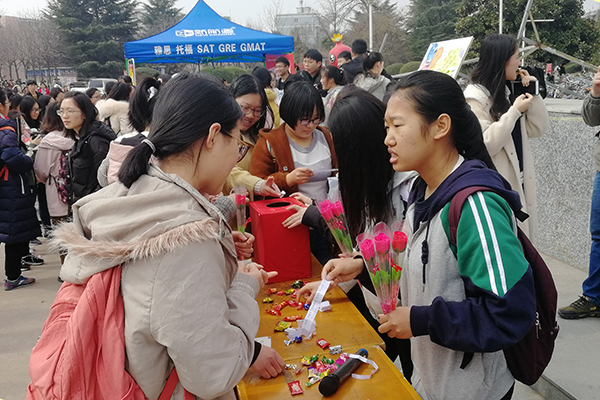 当天下午,同学们还给炸金花在线玩 的女辅导员老师们赠送了鲜花和小礼物。作为辅导员,平时的她们工作严谨、态度认真,用爱心和耐心温暖每一位学生;但在今天,她们和全院女生共度女生节。接受鲜花的韩梦璇老师说道:“很开心和炸金花在线玩 的同事和学生一起度过这个节日,也祝炸金花在线玩 的女教师和小仙女们节日快乐!”