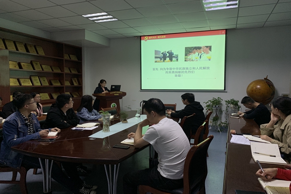 最后,党支部书记王鑫同志对学习英雄精神致敬英雄的意义进行总结:习近平总书记自十八大以来多个场合提到民族英雄事迹,提到祖国是人民最坚实的依靠,英雄是民族最闪亮的坐标。对中华民族的英雄,要心怀崇敬,要浓墨重彩记录英雄、塑造英雄;作为研究生党员,要有担当,善作为,公道正派,公平正义,要有英雄般的压倒一切困难的大无畏精神。