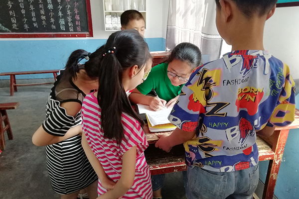 队员们以科普中国历史知识、教授音乐为主,通过故事和图片激发孩子们对历史的兴趣,让孩子们带着快乐学习中国历史朝代的更迭,带着兴趣了解历史长河中的英雄人物。在音乐课上,孩子们表现活跃,认真学习唱歌,整齐嘹亮的歌声是对队员们最好的回应。在课间休息时,有的孩子向志愿者询问更多的历史知识,有的孩子会带上暑假作业以寻求帮助。课堂,激发了孩子们对知识的渴望,坚定了他们对外面世界探索的决心,也在他们心里埋下了梦想的种子。