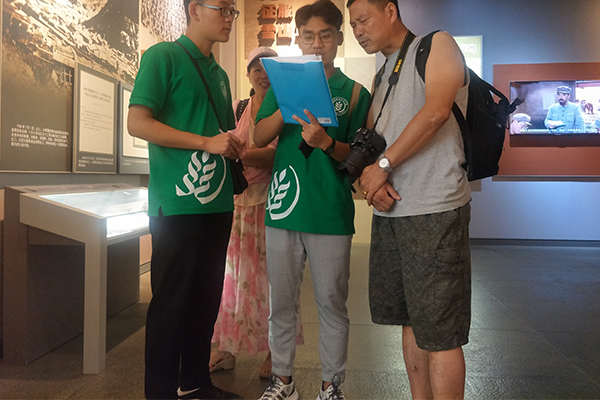 下午队员们再次来到遵义会议会址进行旅游景区参观情况的问卷调查,在调查过程中队员们和遵义会议会址的管理人员进行交流学习,了解了更多有关知识;此外,队员们还遇到了同样来到会址进行红色调研的其他高校调研团队,大家进行了亲切友好的交流学习,在一片和谐的交流中完成了今天的调研任务。