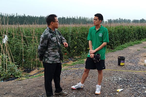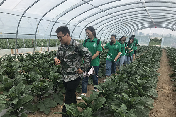 在合作社技术员马天成的带领下,队员们首先来到了西瓜-茄子大棚种植基地。马天成曾毕业于在线炸金花 ,他见到校友来,倍感亲切,热情地接待了实践队,为队员们详细讲解了种植基地的生产经营情况。据了解,该种种植方式是当地近一两年发展起来的新型农业,一年两种,先种西瓜,再种茄子,实现创收。同时,在该乡吴书记的介绍下,队员们了解到,当地政府部门对种植基地也给予了大力支持。为鼓励当地农民积极种植大棚蔬菜,政府采取“盖棚补贴”的政策,在保证了当地农户的基本经济收入同时,也鼓励他们发展特色产业,实现脱贫致富,同时带动当地经济发展。