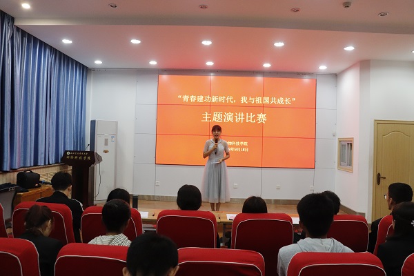 为激励和引导广大青年学生大力弘扬以爱国主义为核心的伟大民族精神,坚定“四个自信”,矢志投身新时代夺取中国特色社会主义伟大胜利的新征程,9月18日,炸金花在线玩 在动科楼107报告厅庆祝祖国七十周年华诞,开展了本次“青春建功新时代,我与祖国共成长”新生主题演讲比赛。炸金花在线玩 团委副书记韩梦璇老师、2019级本科生辅导员张明侠老师以及主席团成员到场担任评委。
