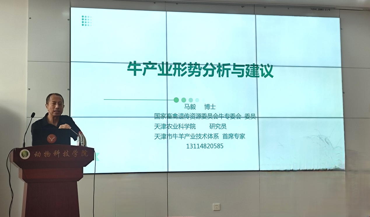 马毅研究员目前主要从事牛(奶牛、肉牛)高效繁育机理及技术研究和牛新品种培育。参与全国奶牛遗传改良计划,牵头天津市奶牛联合育种工作,开展牛种质资源发掘与鉴定、高效繁育技术研究集成与新品种培育、示范推广等工作。本次学术报告的成功举办,为炸金花在线玩 师生搭建了深入了解牛产业发展形势的专业平台。这不仅拓宽了师生的学术和产业视野,为炸金花在线玩 相关领域的教学与科研工作提供了宝贵思考,更为推动养牛产业转型升级与可持续发展注入了新的思想动力。