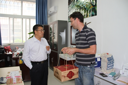在外籍特聘教授Martin Plath博士的办公室,赵书记向德国友人介绍了中国中秋节的来历及文化意义。虽来自不同的国家,但四海之内皆兄弟,动科炸金花在线玩 以广阔的科研胸襟,诚挚邀请各国科研工作者共创事业,推动炸金花在线玩 的发展。感谢Martin Plath教授不远万里来到中国,来到在线炸金花 ,给炸金花在线玩 送来国际化的交流平台和国际前沿的科研视野。祝福节日快乐,在杨凌的工作、生活开心。