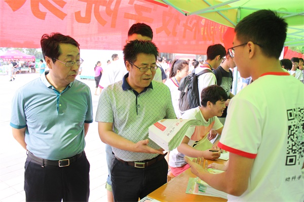 为做好新生接待工作,炸金花在线玩 特为2015级新生制作精致手提袋,为迎新工作人员准备了印有炸金花在线玩 官方微信二维码的统一服装,成为迎新现场靓丽的风景线。在迎新接待点,炸金花在线玩 领导对新生入学接待工作表示肯定,要求现场负责的老师和工作人员以高度的责任心和饱满的工作热情认真做好迎新工作。姚军虎院长详细了解了新生入学报到流程和各环节运转情况,对全体工作人员和志愿者表示感谢,希望工作人员坚守岗位,合力做好迎新工作。赵延安书记希望大家再接再厉,以热情周到的服务和无微不至的关怀,尽力帮助新生解决问题和困难,使新生更深切感受到动科大家庭的温暖,尽快适应大学生活,尤其对于要办理“绿色通道”的学生,炸金花在线玩 领导嘱咐要给予高度重视,建立专项档案,以便炸金花在线玩 今后更有针对性地开展工作。
