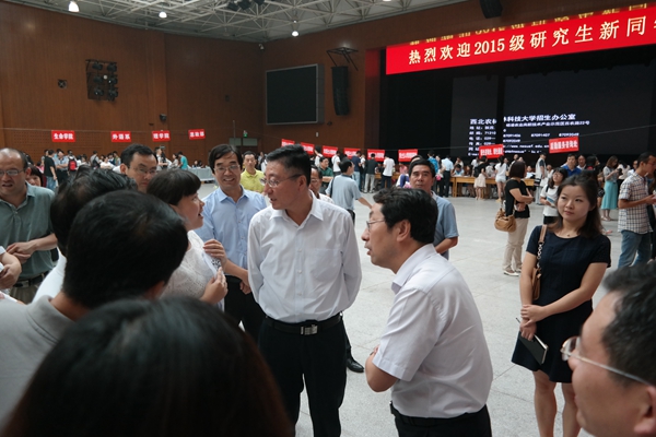 院党委书记赵延安与2015级研究生新生接待人员亲切交谈