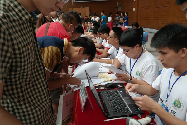 金秋送爽,丹桂飘香。在这秋意盎然,美景沉醉的校园里,又一批莘莘学子怀揣着梦想与希望,从五湖四海相聚于在线炸金花 ,在这里他们将要不断战胜自我,挑战人生新的巅峰。截至9月8日,为期两天的2015级研究生入学接待工作在南校绣山活动中心画上圆满句号,炸金花在线玩 194名研究生新生将开启一段新的旅途。