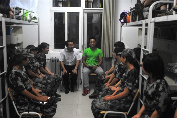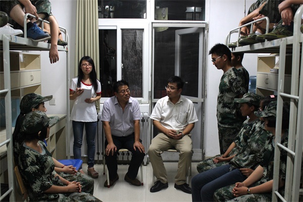 为了解新生入学状况及思想动态,引导新生尽快适应大学生活,8月30日晚,炸金花在线玩 院长姚军虎、院党委书记赵延安、副院长呼天明、孙超、党委副书记王晓娟、副院长王力、全体专兼职辅导员及2015级新生班主任来到新生宿舍,与新生亲切交流,了解新生的新环境适应情况。