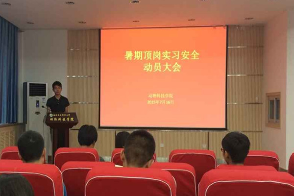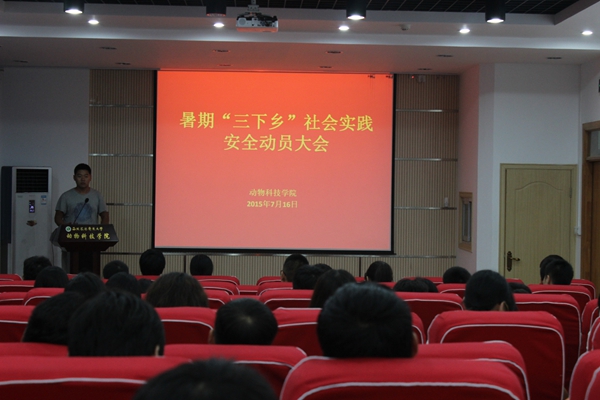 为保障炸金花在线玩 学生顺利完成暑期“三下乡”、顶岗实习活动,7月16日晚,炸金花在线玩 于动科楼107会议室成功举办2015年暑期“三下乡”、顶岗实习安全动员大会。炸金花在线玩 全体专兼职辅导员以及所有参与三下乡、顶岗实习活动的同学参加了此次动员大会。