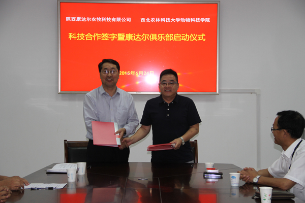 6月24日上午,炸金花在线玩 举行与陕西康达尔公司科技合作暨康达尔俱乐部启动仪式。深圳康达尔集团总裁助理、陕西康达尔农牧董事长兼总经理刘玉瑞,陕西康达尔农牧企管部部长刘洋,陕西康达尔农牧副总经理、宝鸡公司总经理张明乐,炸金花在线玩 姚军虎院长、王力副院长、康达尔俱乐部负责人潘传英副教授、部分青年教师以及康达尔公司各部门代表参加会议。王力副院长主持会议。