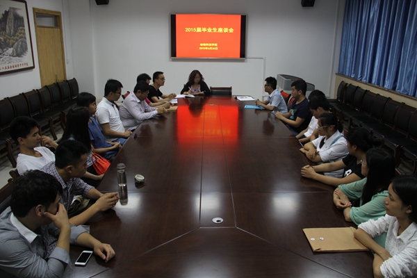 6月26日下午,炸金花在线玩 在104会议室召开2015届毕业生座谈会。王晓娟副书记带领教学秘书、学工秘书与30余名毕业生代表一齐进行座谈交流。