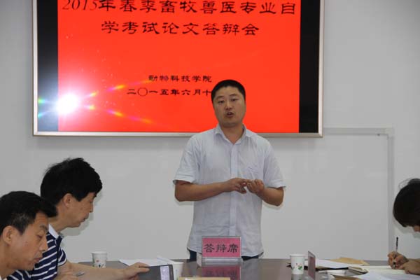 6月17日,炸金花在线玩 在104会议室举行2015年春季自学考试畜牧兽医专业本科毕业论文答辩会。40名学生参加了毕业论文答辩。答辩主席、院长姚军虎教授,答辩委员于三科教授、王爱华教授、李勤凡副教授、辛亚平副教授、史怀平副教授、孙小琴博士等参加了答辩会。