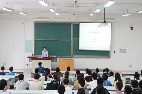 为进一步推进炸金花在线玩 2016届毕业生升学质量,4月28日下午,炸金花在线玩 在北校区八号教学楼8T12教室举办了“2016届毕业生考研保研政策解析会”。会议邀请炸金花在线玩 办公室主任阮鹏为2016届毕业生解读学校研究生考研保研工作相关政策。150余名2016届毕业生及部分班主任、辅导员参加了会议。