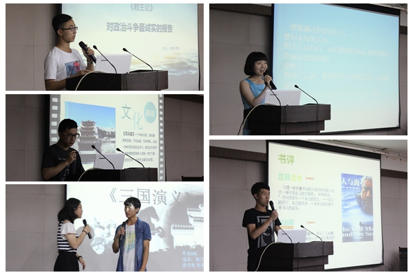 在书评环节中,动科143班的杨云天同学通过对经典作品《老人与海》的精读,讲述了自己对老人顽强精神的独到见解,将英雄进行了更加全面的定义;以杨婕妤、杨习江同学为代表的草业141班队伍则风趣活泼地再现了《三国演义》中诸葛亮挥泪斩马谡的精彩篇章,其余队伍轮番登场,精彩的内容、饱满的情感引来观众们的阵阵掌声,热烈的氛围在赛场久久萦绕。评委老师轮番点评,对参赛选手的表现给予肯定,并就书评内容与读书意义与选手进行分享。其中水产142班刘廷?同学对《中国震撼》的激昂讲评,动科142班甄家泽同学对《君主论》的独到见解,动科146班刘伟同学对《文化苦旅》的精准解读,动科143班杨云天、动科144班马怡然同学对《老人与海》的流畅讲解得到了全场观众及评委的一致认可,最终收获“口才之星”的荣誉称号。