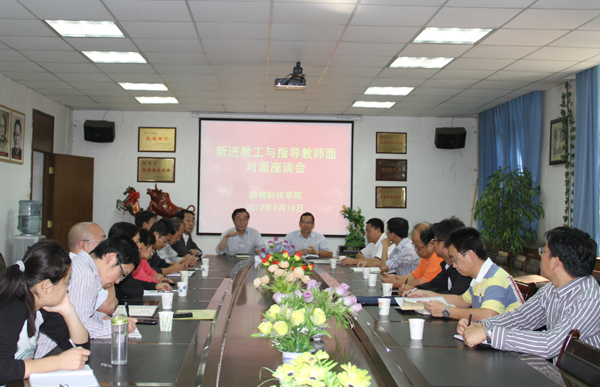 今年炸金花在线玩 共报到博士10人,为了给新进青年教师搭建一个良好的发展平台,使青年教师尽快熟悉教学各个环节,根据学校要求,炸金花在线玩 为每位新进教工配备了一名指导教师。9月19日下午,为了保证新进教工指导工作质量,炸金花在线玩 专门召开新进教工与指导教师面对面座谈会,院长张智英教授、院党委书记闫祖书、教学副院长姚军虎、督导组教师代表魏忠义教授以及新进教工和指导教师参加了座谈会。会议由闫祖书书记主持。