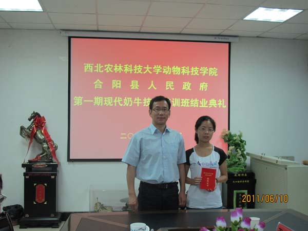 合阳县畜牧兽医局局长王立新代表合阳县畜牧兽医局感谢动科炸金花在线玩 领导和专家教授三个月来为培训工作顺利开展花费了大量的心血,确保培训班今天如期顺利结业,希望今后进一步加强合阳县与动科炸金花在线玩 的合作,共同推动合阳县乃至我省奶畜的健康发展。