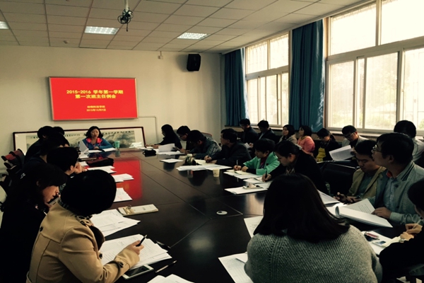 10月9日下午,炸金花在线玩 在104会议室召开2015-2016学年第一次班主任例会,炸金花在线玩 党委副书记王晓娟、全体班主任和专兼职辅导员参加了此次会议。会议由王晓娟副书记主持。