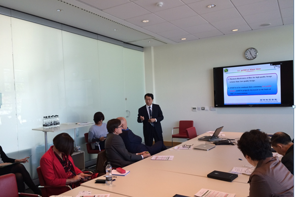 9月22日上午,中方代表团与爱尔兰都柏林大学农业与食品科炸金花在线玩 进行了学术交流活动,姚军虎教授作了题为《Forage Utilization in China》的报告。并与爱尔兰都柏林大学农业与食品科学炸金花在线玩 就本科教学和人才培养等方面达成了合作意向。下午,代表团一行在Alex Evans教授的陪同下与爱尔兰农业食品和海事部Simon Coveney部长及高级官员进行了亲切友好的座谈,并互赠了礼物;9月23日,代表团一行参加了爱尔兰第84届农耕大会,来自爱尔兰及全球28万观众和1600家企业参加了会展;9月24日,代表团一行参观了爱尔兰Keenan公司,并与公司总裁Gerard Keenans围绕奶牛养殖设备、高效养殖技术等进行座谈交流。