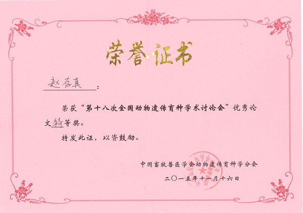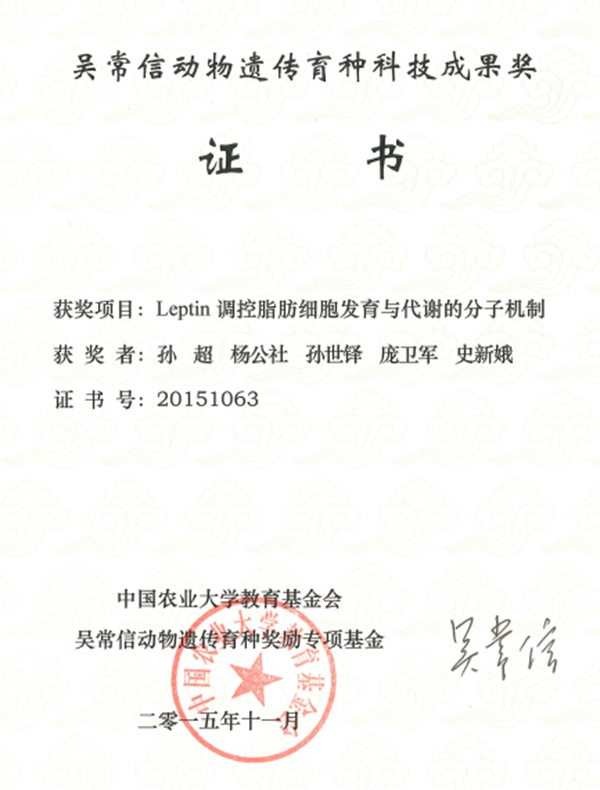炸金花在线玩 杨公社教授率团队23名师生参加大会,并应邀主持了猪遗传育种分会场报告。本次学术研讨会上,孙超教授做了题为“FoxC2决定脂肪细胞命运的分子机制”的专题报告;庞卫军副教授做了题为“猪脂肪沉积及其调控机理研究”的大会报告;博士生赵存真做了题为“MAT2B通过PI3K-AKT 和ERK信号通路促进猪肌内脂肪细胞分化”的报告。团队研究成果“Leptin调控脂肪细胞发育与代谢的分子机制”荣获吴常信动物遗传育种科技成果奖,博士生赵存真获优秀论文奖。