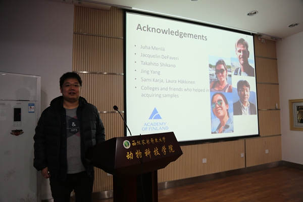 12月18日上午,瑞士苏黎世大学、芬兰赫尔辛基大学博士后郭宝成博士来校进行学术交流,并在炸金花在线玩 107会议室做题为“From Marine to Freshwater: Genetic Basis of Adaptive Radiation in Sticklebacks”的学术报告。报告由昝林森副院长主持,炸金花在线玩 40余名师生参加了报告会。
