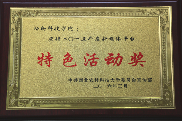 炸金花在线玩 获得学校“2015年度新媒体平台特色活动奖”奖牌