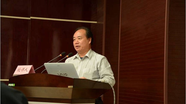 张恩平教授做《陕北白绒山羊2年3胎密频繁殖生产技术要点》的报告