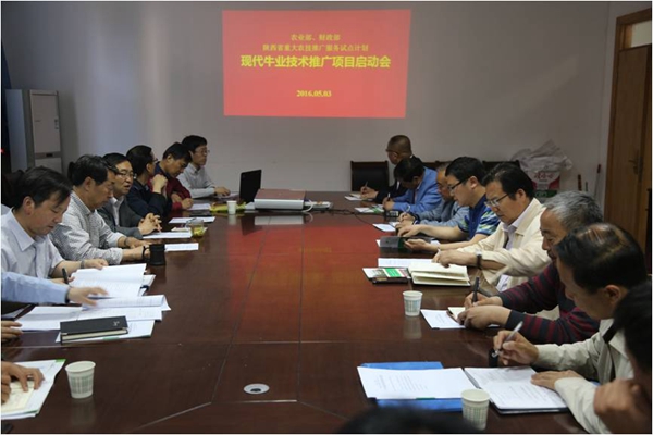 5月3日,陕西省重大农技推广服务试点计划牛产业试点项目启动会在我校动科炸金花在线玩 举行。学校科技推广处张正新副处长,炸金花在线玩 院长、试点计划畜牧产业项目专家组组长姚军虎教授出席会议并讲话。牛产业项目首席专家、省市县畜牧推广部门负责人、项目承担单位负责人、协作单位及我校相关专家共30多人参加,会议由动科炸金花在线玩 副院长、牛产业首席专家昝林森教授主持。