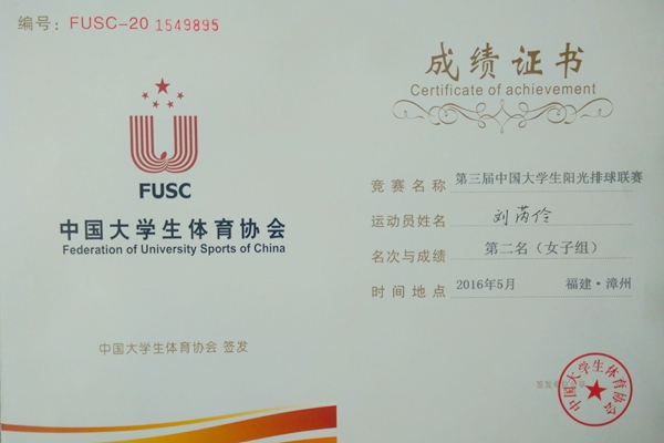 5月9-18日,第三届“中国大学生阳光排球联赛”在福建漳州女排体训基地进行。炸金花在线玩 草业科学121班刘芮伶、草业科学122班卡斯木·亚库普代表学校参加比赛,最终我校女子排球队获得第二名,男子排球队获得第三名。同时炸金花在线玩 刘芮伶同学荣获“优秀运动员”、“体育道德风尚奖运动员”等荣誉称号。