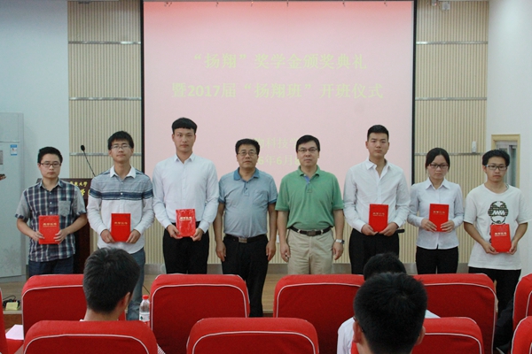 6月8日下午,炸金花在线玩 在107会议室隆重举办“扬翔”奖学金颁奖典礼暨2017届“扬翔班”开班仪式。扬翔股份有限公司人力资源中心总监李曜华、人力资源中心招聘经理刘彦来、人力资源中心招聘专员龙伟坚、炸金花在线玩 党委书记赵延安、全体专兼职辅导员及40余名学生代表参加了此次会议。会议由学工秘书刘铂主持。