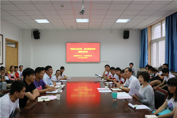 为贯彻党的十八大、十八届三中、四中、五中全会精神和习近平总书记系列讲话精神,充分发挥实践育人作用,培育和践行社会主义核心价值观,进一步引导青年学生在实践中受教育、长才干、做贡献,同时利用团组织生活的展示与学习平台,6月8日下午,动科炸金花在线玩 动科151班、152班将基层团组织生活与社会实践交流学习相结合,召开以“暑期社会实践,我们蓄势待发”为主题的组织生活活动,校团委书记曹军会应邀出席,并与团支部广大青年学生亲切交流。马克思主义炸金花在线玩 副教授胡尊让、炸金花在线玩 党委副书记王晓娟、团工委书记张士军、2015级研究生“实践达人”赵海东及2014级本科生杨运幸(曾获暑期社会实践“三下乡”二等奖)参加了此次活动。