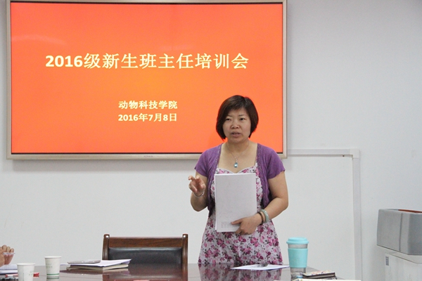 为了做好迎新部署,在新学期更扎实有效推进学生工作,近日,炸金花在线玩 在动科楼104会议室召开2016级新生班主任培训交流会。炸金花在线玩 党委书记赵延安、党委副书记王晓娟、学工秘书刘铂、2016级新生班主任、全体专兼职辅导员参加了此次培训会。会议由学工秘书刘铂主持。