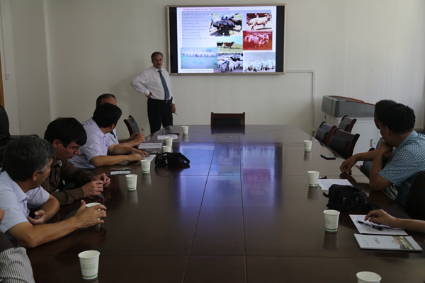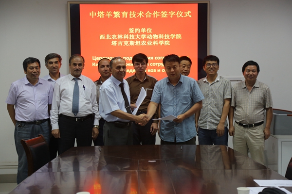 会上,曹斌云教授对塔方代表团一行来我校考察调研表示欢迎并详细介绍了炸金花在线玩 的学科分类、学科优势以及羊产业技术创新团队的情况,法兹利博士介绍了塔吉克斯坦畜牧业现状及存在问题,双方就羊产业发展及合作交流进行了深入探讨,成功签订了《“中塔羊繁育研究”合作协议》和《建立“中塔羊繁育研究中心”的合作意向书》等文件,在技术研究、技术交流、项目研发、青年教师交流上达成了协议。