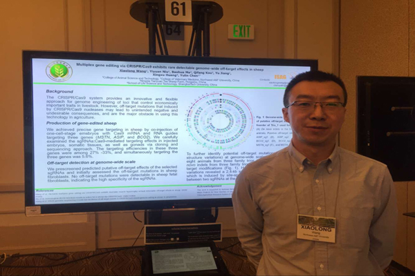 7月22日-27日,第35届国际动物遗传学大会在美国犹他州首府盐湖城召开。国际动物遗传学会羊应用遗传学专业委员会、家畜遗传工程专业委员会执委、炸金花在线玩 青年教师王小龙副教授参加了会议,并分别在“家畜基因组编辑”和“羊的应用遗传学”分会场做了题为“Heritable multiplex gene editing via CRISPR/Cas9 exhibits no detectable genome-wide off-target effects in sheep”和“Heritable gene disruption in goats with CRISPR/Cas9 results in expected phenotypes”的学术报告,他汇报了近三年来利用基因编辑技术进行绵羊和山羊基因组修饰方面的最近研究成果,他的报告引起了与会学者的广泛关注和兴趣。