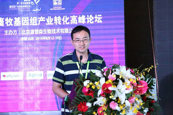 开幕式上,中国畜牧兽医学会动物遗传育种学分会理事长、中国农业大学张勤教授和北京康普森生物技术有限公司董事长刘继强先生先后致辞。张勤教授充分肯定了论坛主办方致力于动物基因组产业转化方面的工作,并对定制芯片应用于动物分子育种的前景进行了展望。刘继强董事长对参会的嘉宾表示热烈欢迎,并做了企业自主研发芯片和生物信息学分析新品的发布。我校昝林森教授、姜雨教授以及中国农业大学张胜利教授、中国农科院北京畜牧所杜立新研究员12位专家应邀做了大会报告,炸金花在线玩 专家教授的报告受到了与会代表的广泛关注和好评。