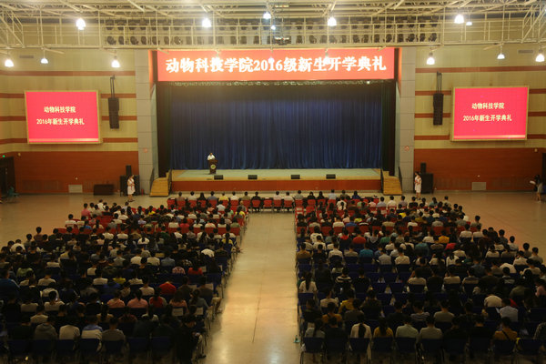 9月12日晚,动科炸金花在线玩 于北绣山活动中心大厅隆重举办2016级新生开学典礼。炸金花在线玩 党政领导、专家学者、管理干部、2016级新生班主任及全体本科生和研究生新生参加了典礼。开学典礼由院党委书记赵延安主持。