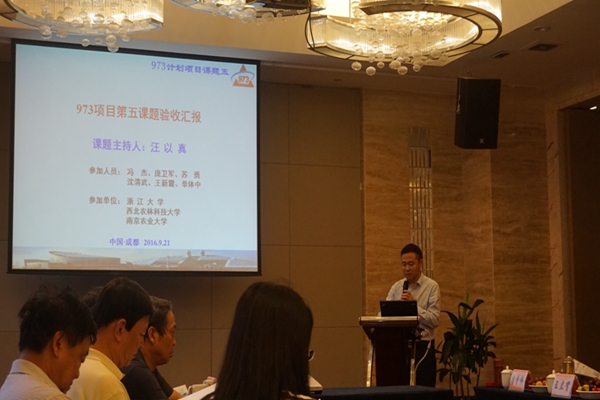 9月21-22日,973项目“猪肌纤维发育和肌内脂肪沉积的机制与营养调控”课题结题验收会议在四川成都召开。教育部科技司基础处主任邵海涛、中国农业大学科研院处长高铭宇、农业部饲料工业中心副主任牛爽和四川农业大学校长郑有良出席会议并致辞。973项目咨询组专家炸金花在线玩 杨公社教授、课题研究骨干庞卫军教授及团队成员于太永、褚瑰燕、李晓和蔡瑞博士参加了会议。此次会议由四川农业大学动物营养研究所承办,来自中国农业大学、浙江大学、在线炸金花 、华中农业大学、南京农业大学、四川农业大学、中国科炸金花在线玩 亚热带农业生态研究所和中国农业科炸金花在线玩 畜牧兽医研究所等10余所高校和科研院所的50多名专家、学者参加会议。会议由中国工程院李德发院士主持。