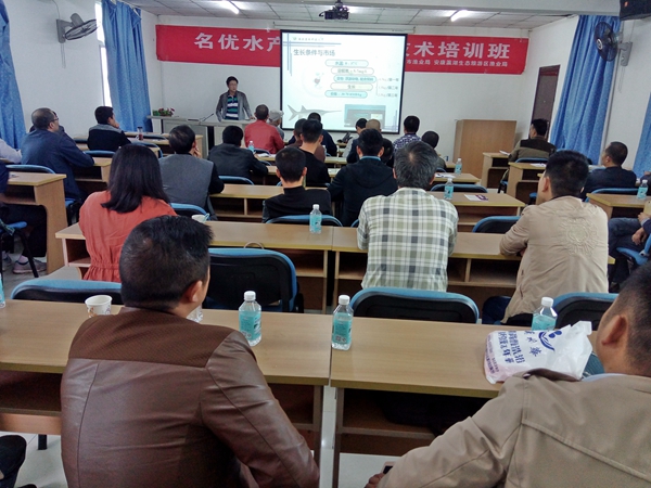 培训班邀请江苏省泰州市水产服务站曹福余主任、安康金诺水产科技公司单世涛总经理分别作了河蟹养殖、匙吻鲟苗种繁育方面的培训,就河蟹养殖的健苗选育、池塘改造、水质管理、饲料供给以及匙吻鲟苗种繁育的技术要点进行了专题培训。室内培训结束后,参加培训的学员参观了试验站的匙吻鲟养殖现场和苗种繁育设施,并专程参观了安康汉水兄弟公司的匙吻鲟苗种池塘培育现场。