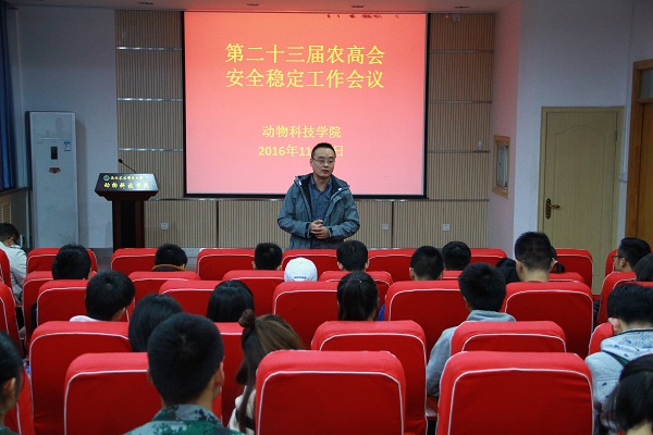 第二十三届中国杨凌农业高新科技成果博览会将于11月5日至9日在杨凌农业高新技术产业示范区举行。为了增强学生安全意识,保证农高会期间各项工作井然有序,11月1日,炸金花在线玩 在107会议室召开农高会期间学生安全稳定工作会议,学工秘书、辅导员、班长和团支部书记参加了会议。