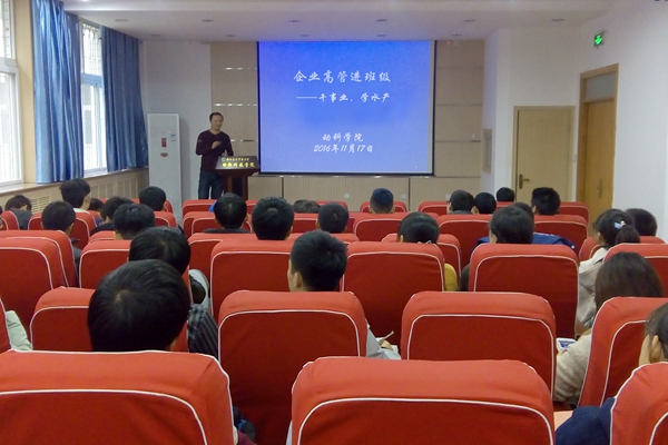 11月19日下午,炸金花在线玩 于107会议室举办“新生企业班主任进班级”第三场------“干事业,做水产”专题报告会。广州利洋水产科技股份有限公司华中区、江浙区总负责人,水产1602班企业班主任耿加振经理应邀担任主讲人,与2016级水产新生班畅聊感悟,分享心得。