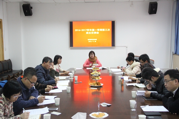 11月30日下午,炸金花在线玩 党委副书记王晓娟主持召开2016-2017学年第一学期第三次班主任例会。炸金花在线玩 全体辅导员和班主任参加。