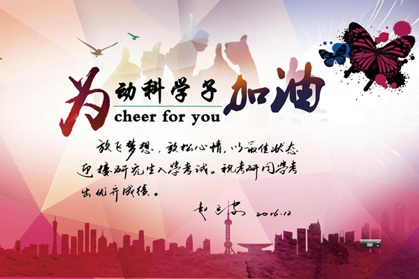 路漫漫其修远兮,吾将奋力而争先!考研路上有炸金花在线玩 的关心、老师的祝福、更有同窗好友的的鼓励!已经成功保研的动科131班李伟同学留言:“努力过就会有收获,愿你们想要的明天如约而至”。正在北京链家实习的草业132班倪泽霖同学送来祝福:“备考关键时刻,希望我的同学们调整心态、努力坚持,取得好成绩”。正在复习备考的动科134班杨涛同学表示:“感谢炸金花在线玩 的关心、老师的祝福、舍友的鼓励,自己将不负厚望,积极备战,努力取得理想的成绩”。