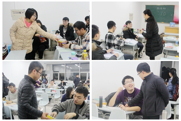 12月14日下午,炸金花在线玩 党委副书记王晓娟、毕业班班主任和全体专兼职辅导员一行来到八号楼10层考研自习室8003和8006,将承载着炸金花在线玩 老师和同学们满满祝福的鲜花和小礼品送到每位考研学子的手中。王晓娟副书记提醒同学们临近考试要调整好状态,保证充足的营养和睡眠;考研不仅仅是学历的提升、学术的深造,更重要的是备考过程中潜力的无限挖掘,冲刺阶段,希望同学们认真备考、勇于前行,努力实现自己心中的科研梦想。班主任、辅导员们叮嘱同学们一定要坚持不懈,考前准备好相关证件,遇到困难及时寻求炸金花在线玩 、老师帮助,并祝愿每一位考研学子金榜题名。一张张笑脸驱走了冬日的严寒,一句句温馨的话语坚定了考研的信心,一件件小小的礼物激发了感恩的情怀,同学们将用自己的实际行动谱写西农人璀璨的明天。