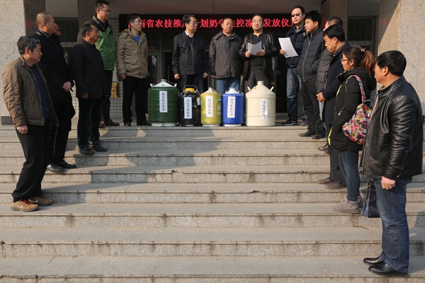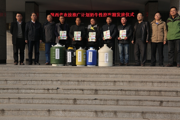 12月30日,陕西省重大农技推广试点计划牛产业项目组奶牛性控冻精发放仪式在我校举行,学校科技推广处吴锋副处长、炸金花在线玩 院长姚军虎教授、项目首席专家昝林森教授,以及校畜牧教学试验基地奶牛场、杨凌核心试验站、西安草滩牧业有限公司、铜川林惠奶牛养殖有限公司、陇县恒泰牧业奶牛养殖专业合作社等项目承担单位负责人、技术人员和学校包抓专家等参加了发放仪式。