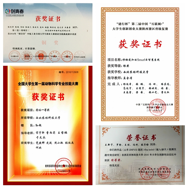 2016年,炸金花在线玩 众多学子在个人创新创业成绩斐然,炸金花在线玩 创新创业成果呈现百花齐放。动科136班王新宇同学论文《NOVEL 46-BP INSERTION/DELETION VARIANT F ZNF132GENE AN ITS INFLUENCE ON GRROWTH TRAITS IN GOATS》以第一作者发表在The Journal of Animal and Plant Sciences,《不同浓度海藻糖对奶山羊睾丸组织冷冻保存效果的影响》等6篇本科生论文在《畜牧与兽医》等国内中文期刊发表。草业122班钟书等4名同学所著论文《一氧化氮介导5-氨基乙酰丙酸对冷胁迫下垂穗披碱草抗氧化系统的调控机制》获第三届全国植物生产类大学生实践创新论坛征文二等奖,草业132班陈洪瑜同学参与的发明专利《一种体积称量器》获得授权,2016级养殖6班李亚新同学等4位同学注册公司,运用专业知识,投身创业实践。