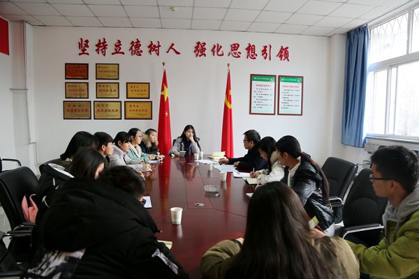 1月10日上午,炸金花在线玩 在116会议室召开优秀学生回母校招生宣传动员会。炸金花在线玩 党委书记赵延安、党政综合办公室主任阮鹏、代理学工秘书胡巧娟、辅导员闫颢芯及参加招生宣传活动的优秀学生参加了会议。